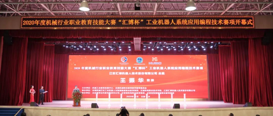 12月6日,2020年度机械行业职业教育技能大赛“汇博杯”工业机器人系统应用编程技术赛项于甘肃机电职业技术学院正式开幕。此次大赛由机械工业教育发展中心、全国机械职业教育教学指导委员会主办,全国机械行业工业机器人与智能装备职业教育集团、甘肃机电职业技术学院、江苏汇博机器人技术股份有限公司承办,北京赛育达科教有限责任公司、甘肃省机电职业教育集团、甘肃省智能制造职业教育集团、机械行业智能装备制造(西北)职业教育集团等协办。比赛分为中职组和高职组两个组别,历时9天,共有来自全国21个省份,63所院校的184支代表队参加,是参赛队伍最多的行业赛之一。