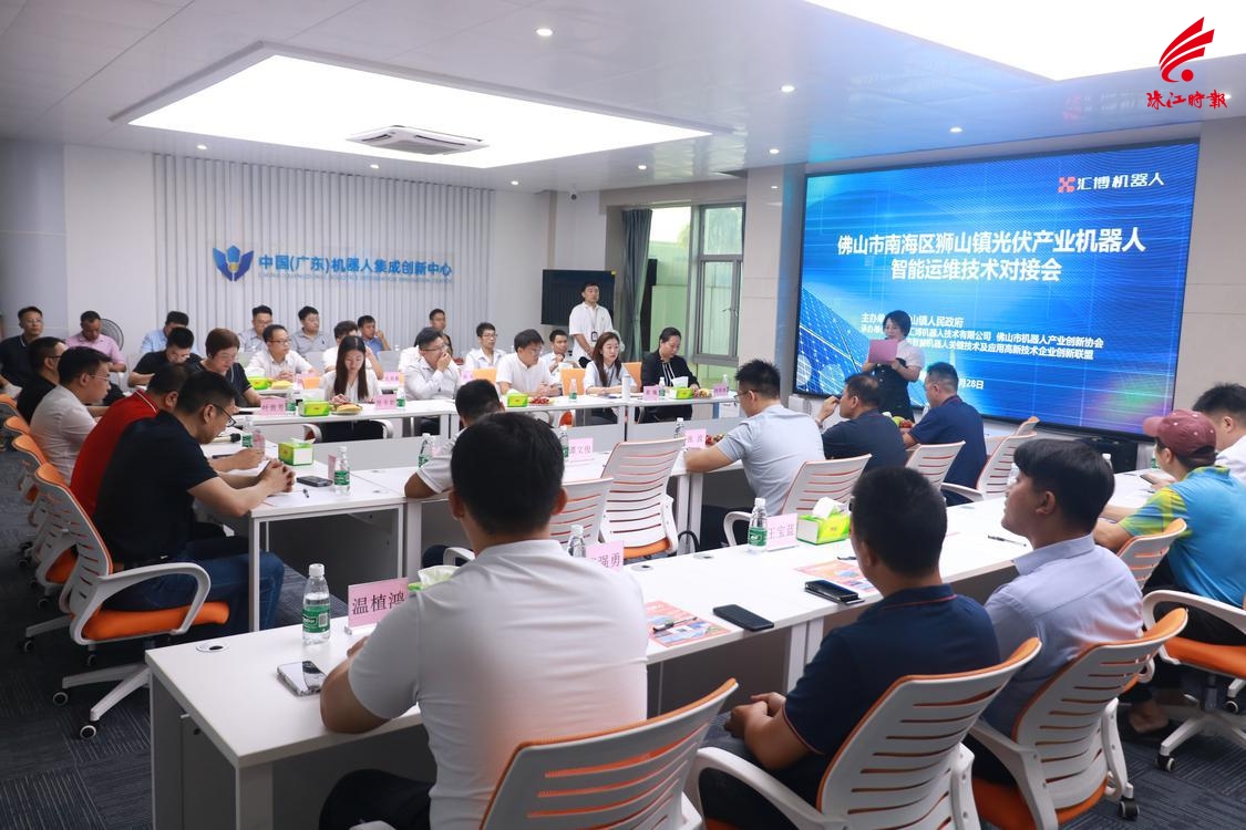 编者按:近日,狮山镇在中国(广东)机器人集成创新中心组织开展光伏产业机器人智能运维技术对接活动,镇内建有光伏发电项目的20家优秀企业代表齐聚一堂,共同探讨光伏行业趋势、智能运维痛点及解决新思路,携手推动狮山光伏产业和机器人产业高质量发展。