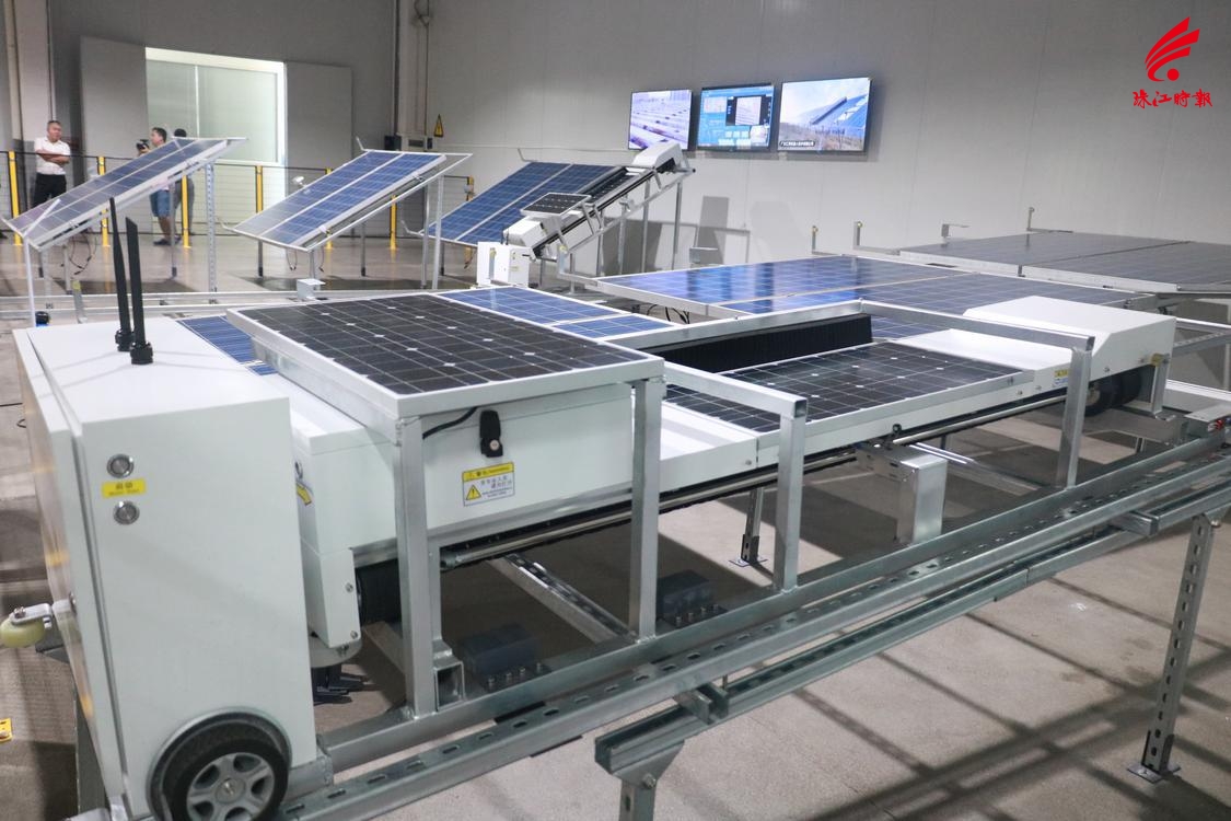 日前,在佛山市南海区狮山镇举行的光伏产业机器人智能运维技术对接会上,广东汇博机器人技术有限公司现场演示光伏面板清洁机器人的作业情况。这是汇博机器人公司研发生产的业内首款环境和地形适应能力强,实用性高的光伏清洁机器人,可实现光伏面板前后、上下错位50mm的跨越,具有强容错能力。