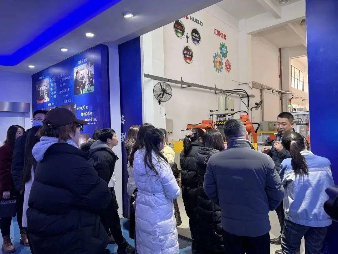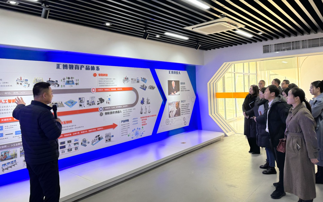企业代表们参观了汇博机器人展厅及1+X实训样板间,深入了解汇博机器人在机器人、智能制造、工业互联网、数字孪生等领域开发的数智应用技术。通过现场参观,代表们对汇博机器人在技术创新、装备研发、人才培养等方面的取得的丰硕成果给予了高度赞赏。