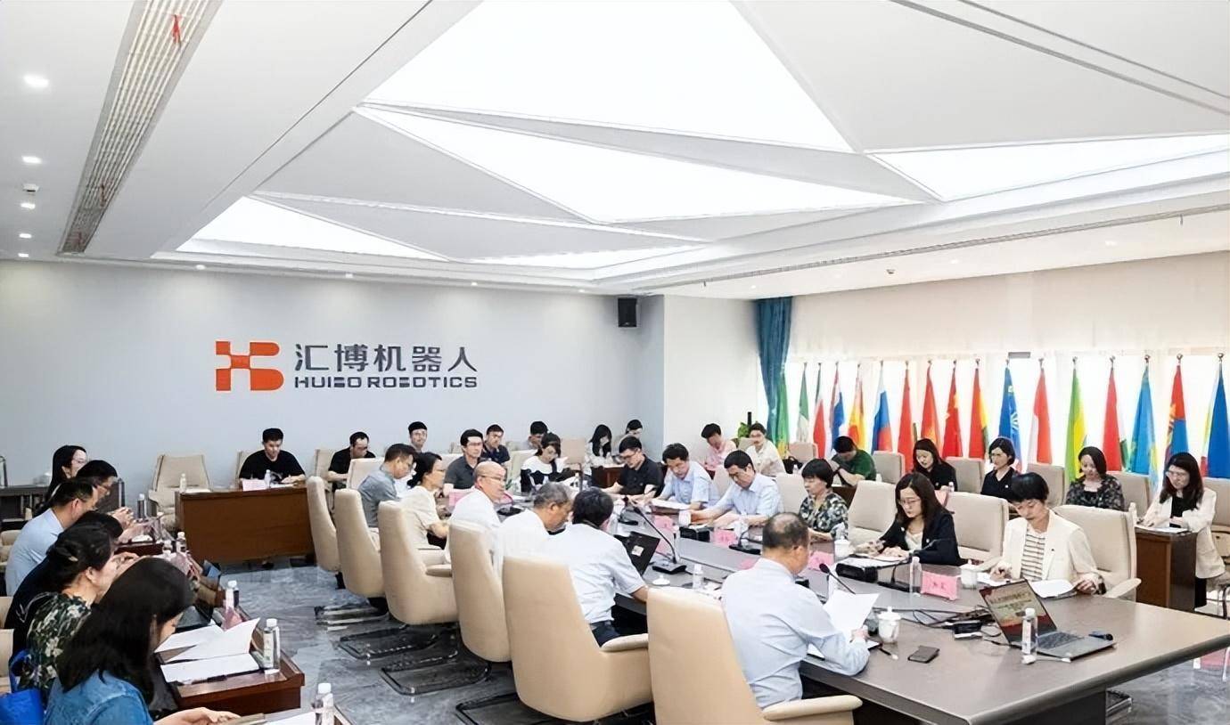 在汇博展厅、汇博机器人学院及1+X实训样板间,王振华围绕公司的发展历程、主营业务、典型案例和解决方案等,详细介绍了公司工业与教育双轮驱动,工业装备、教育服务与人才培养“三位一体”的发展模式,以及公司在工业机器人、智能制造、人工智能等新专业建设和人才培养方面所取得的系列成果。