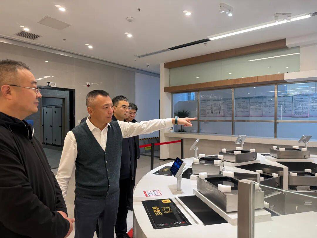 图:调研青龙湖产业园智慧餐厅。