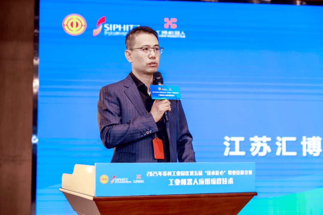 启动仪式上,汇博机器人集团副总裁涂强向各位领导嘉宾和参赛选手们表示热烈欢迎。他指出,工业机器人应用编程技术是推动制造业升级的核心力量。希望借助技能竞赛这个平台,为技术人才搭建展示技能、交流学习的舞台;促进技术的普及与提升,推动产教深度融合;大力弘扬精益求精的工匠精神,为苏州工业园区的智能制造产业发展注入新的活力。
