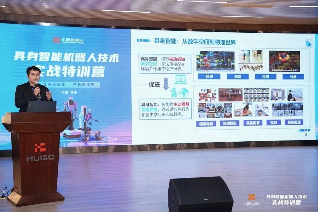 3月18日-20日,由机械工业教育发展中心指导、鹏城实验室支持、江苏汇博机器人技术股份有限公司主办的全国首个“具身智能机器人技术实战特训营”在苏州圆满举办。来自全国115所高校的260余名骨干教师齐聚一堂,开启为期3天的“沉浸式”具身智能前沿探索与教学实战演练。