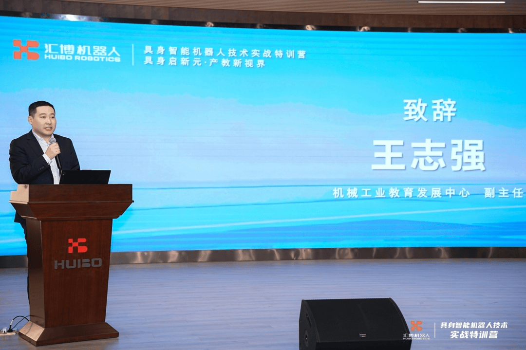 本次特训营集结政、产、学、研各方权威力量,为参训教师带来一场思想与技术并重的高浓度知识盛宴。开班仪式上,机械工业教育协会副会长陈晓明、机械工业教育发展中心副主任王志强出席活动并致辞。江苏汇博机器人技术股份有限公司总裁王振华代表主办单位向参加本次培训的各位专家、领导、老师表示诚挚的欢迎。
