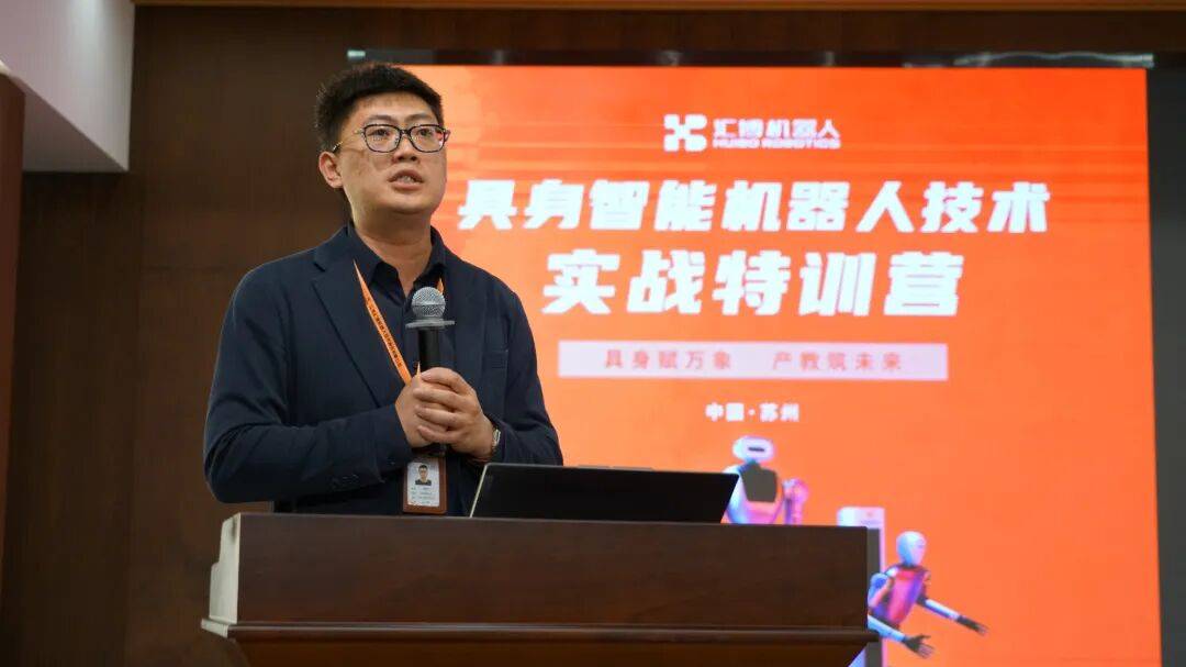 汇博机器人研发部总监许辉博士围绕《具身智能机器人认知》展开专业讲解,从具身智能的基础概念、核心要素、技术体系、组成部分,以及大模型与具身智能机器人的融合、VLA模型技术应用、强化学习实现路径等核心内容,系统介绍了具身智能在机器人领域的应用底层逻辑,帮助学员快速建立起具身智能机器人技术的知识根基。