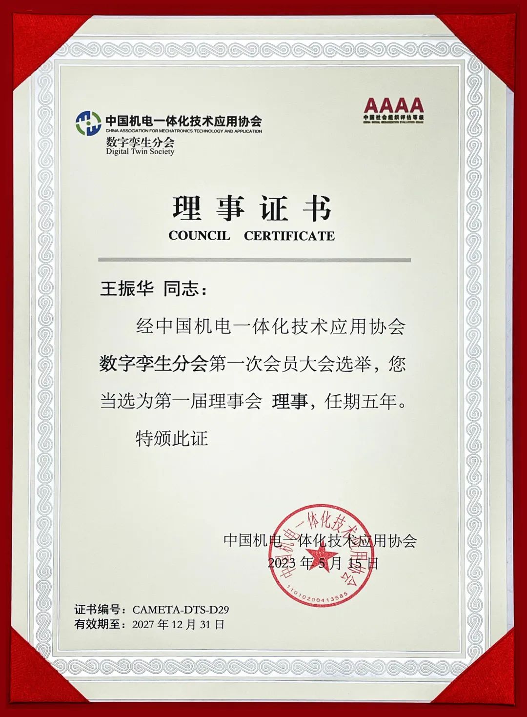 汇博机器人CEO王振华当选中国机电一体化技术应用协会数字孪生分会第一届理事会理事。