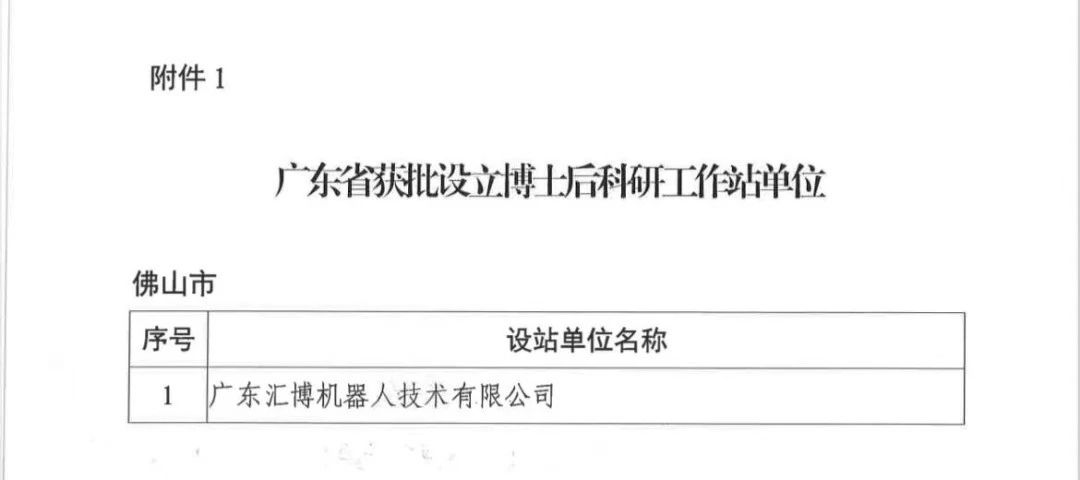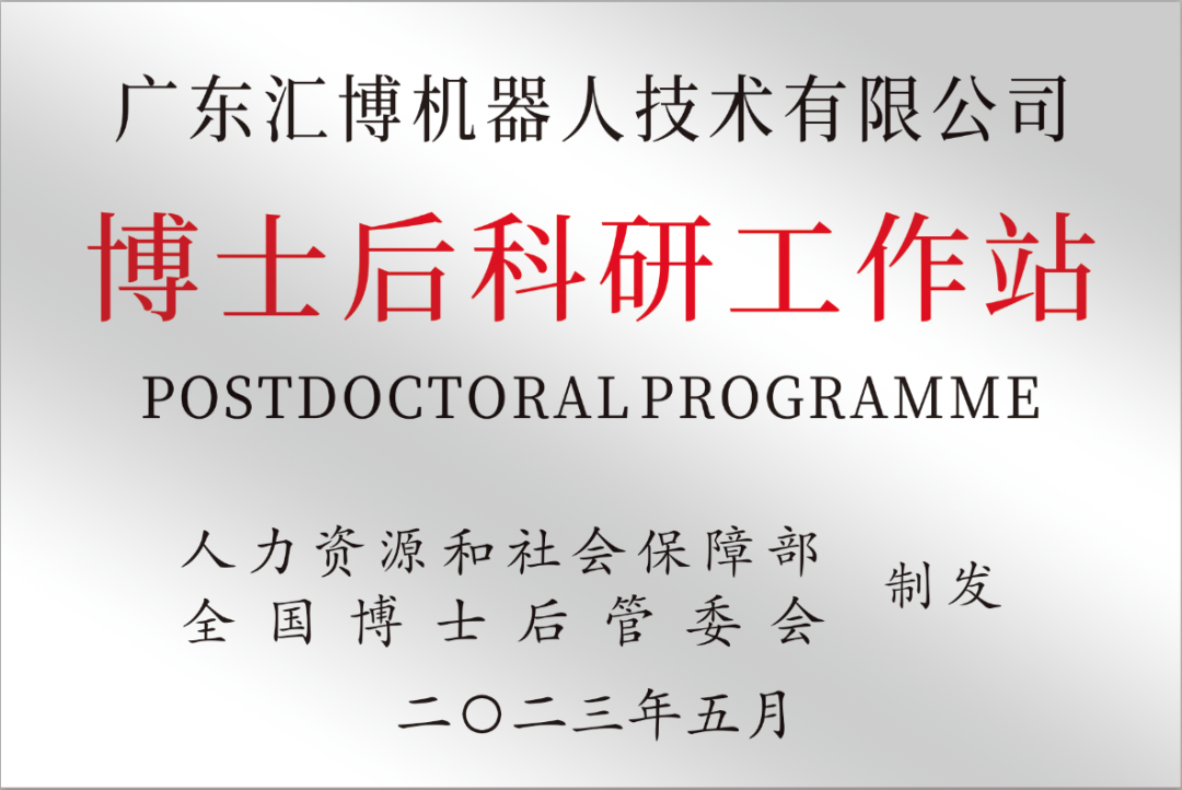 近日,全国博士后管委会办公室公布2022年第二批次博士后科研工作站新设站备案情况,广东汇博机器人技术有限公司成功获批设立博士后科研工作站,标志着汇博机器人建设与研究人才培养又迈上了一个新台阶。