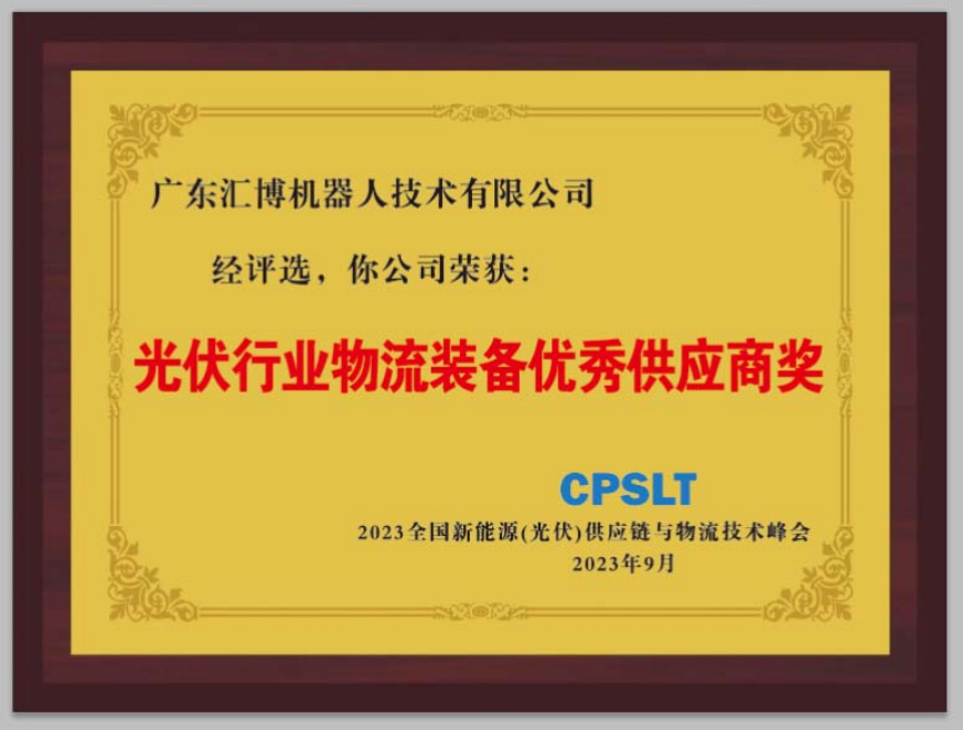 9月22日,由《物流文视界》主办的“2023全国新能源(光伏)供应链与物流技术峰会”在江苏常州成功举办。汇博机器人凭借在光伏领域的优秀智能物流系统解决方案以及大量应用实践,荣获“光伏行业物流装备优秀供应商奖”。