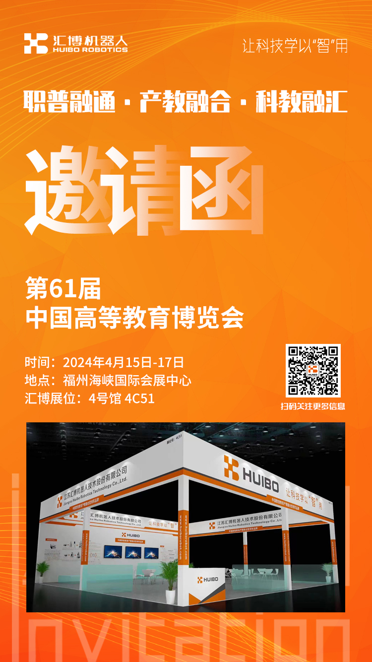 2024年4月15日-17日,第61届中国高等教育博览会将在福建福州海峡国际会展中心举办。汇博机器人受邀参与,亮相本次展会4号馆4C51展位。