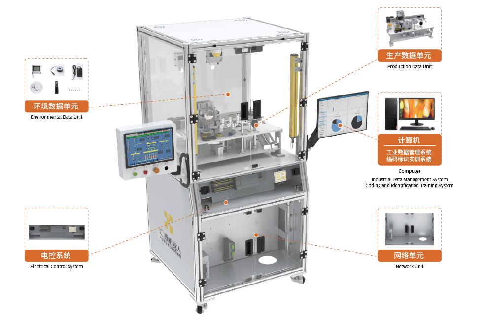 数据采集与网络标识基础实训平台基于多类型传感器、读写装置与通讯协议,结合工业生产场景,应用各类工业总线及互联网协议,将网络标识解析技术应用于产品、设备及生产流程中,进行设备管理、产品追溯、信息标记等应用。